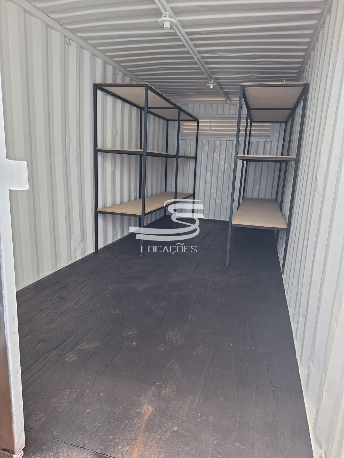 Almoxarifado com portas de abertura total duas folhas (própria do container). Pintura externa em preto fosco e pintura interna em branco gelo. Possui prateleiras 5,80 x 2,00 x 0,43 metros em ambos os lados cada.